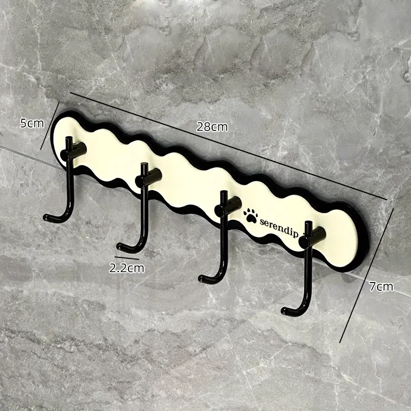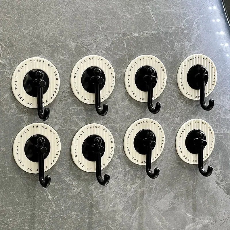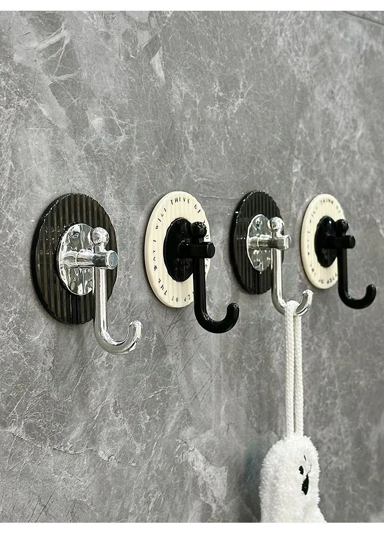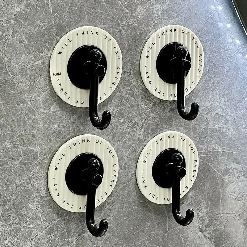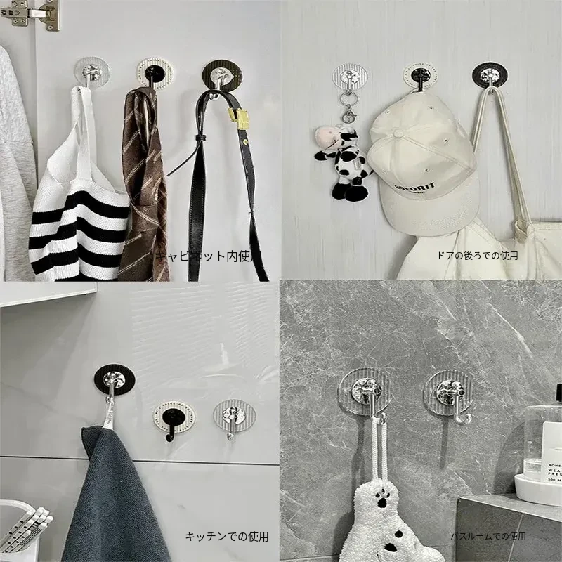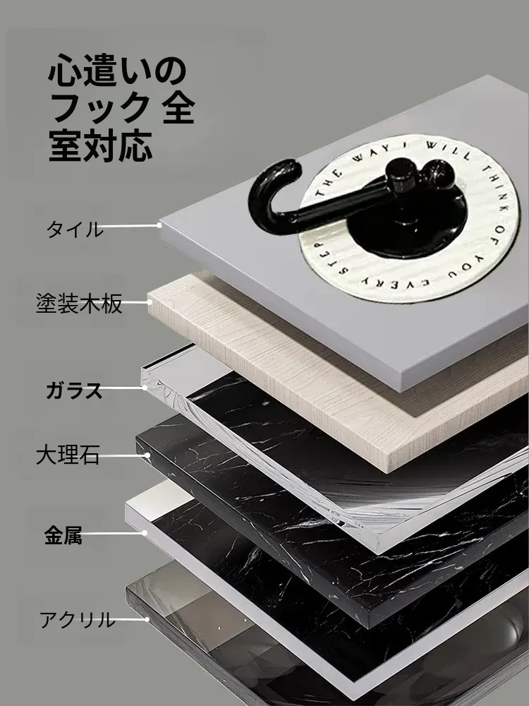 【クリームブラック4フック】✅安定して落ちない【釘不要接着剤付き】