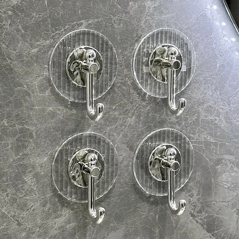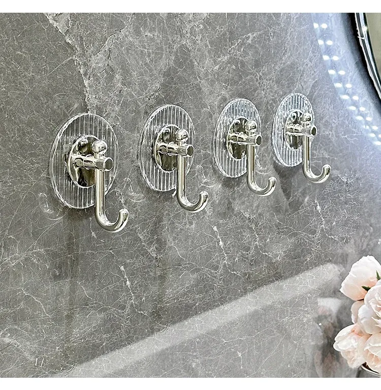 【クリームシルバー6フック】✅安定して落ちない【背面粘着テープ付き】
