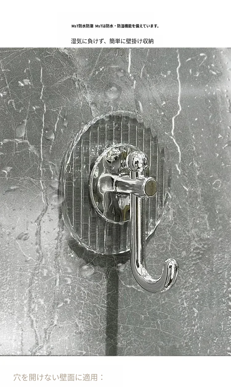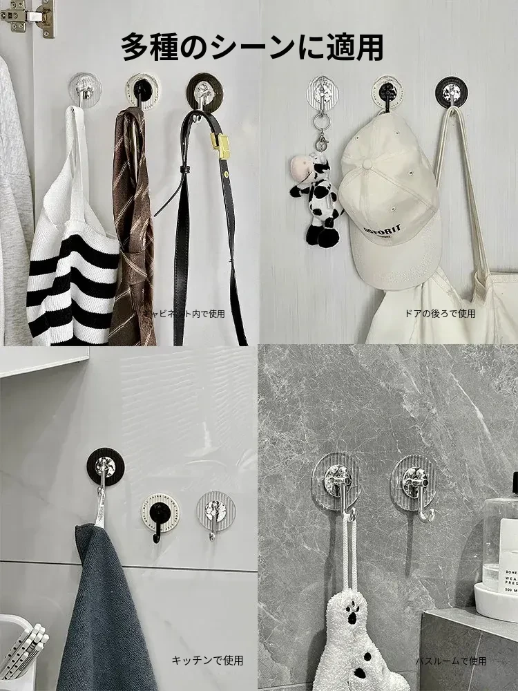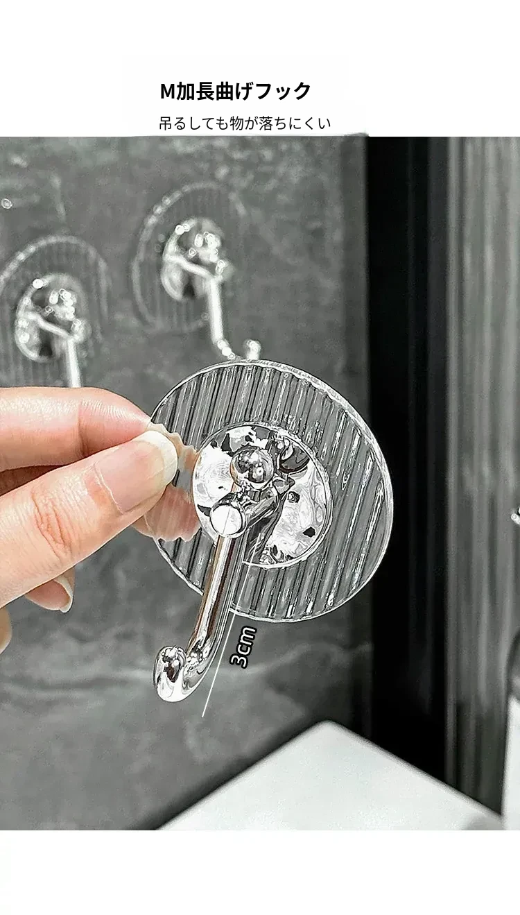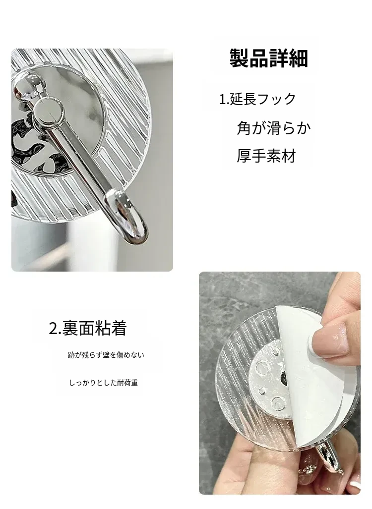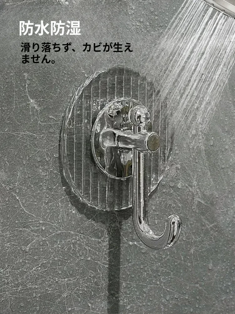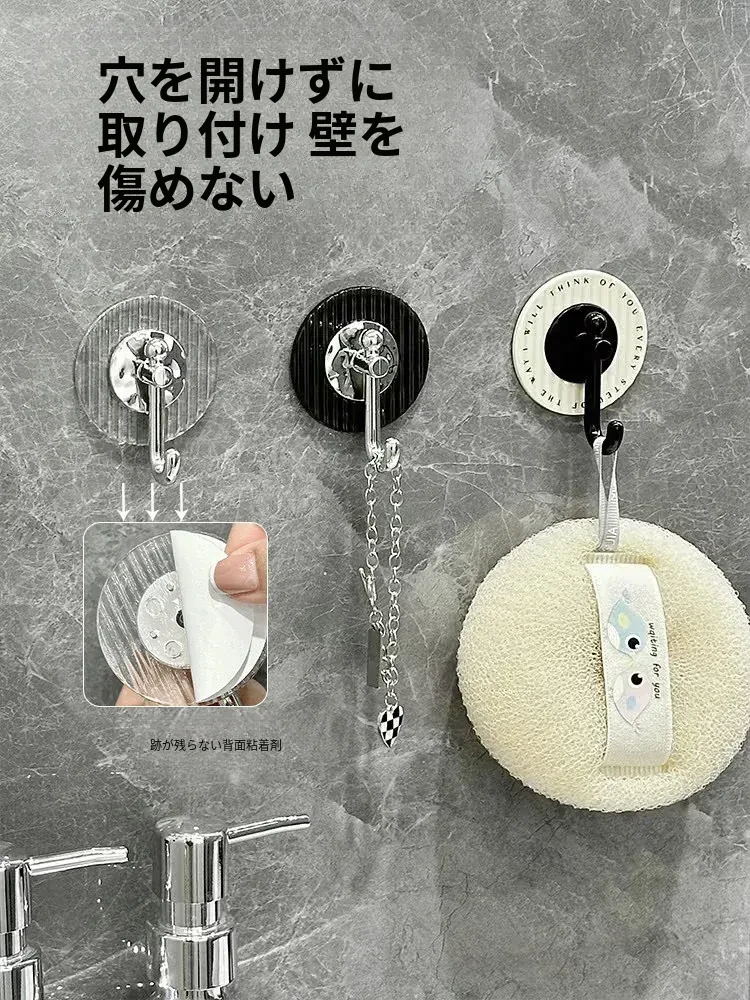 強力粘着フック!穴あけ不要のバスルームフック、軽やかにタオルを掛けられる高級感あふれる無痕設計。ドア裏や壁に簡単取り付け、衛生的でスタイリッシュな空間を実現!