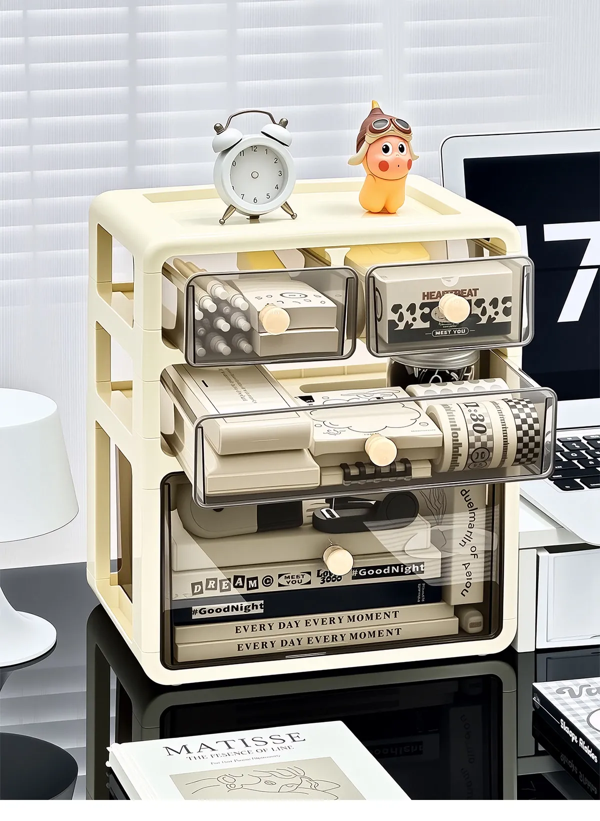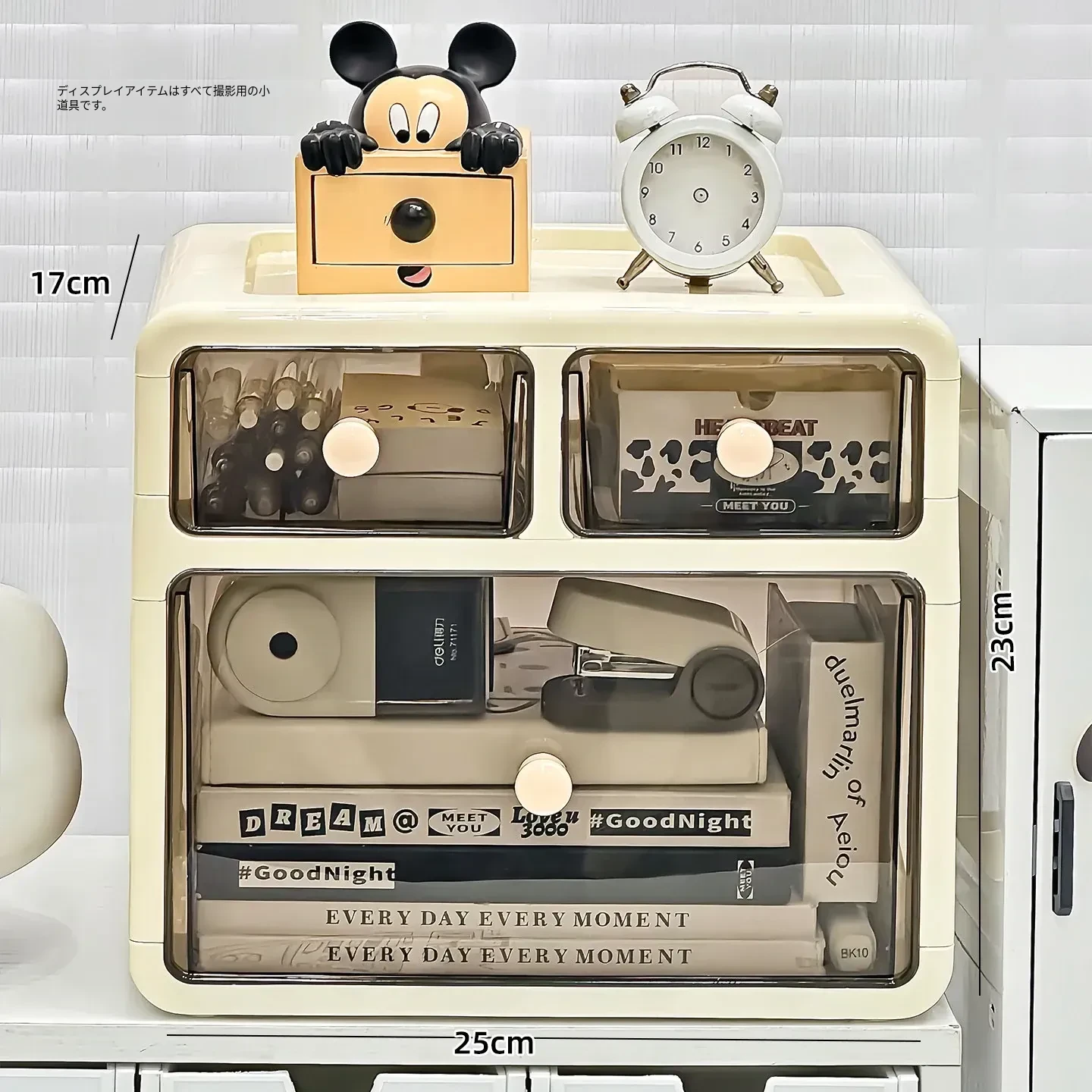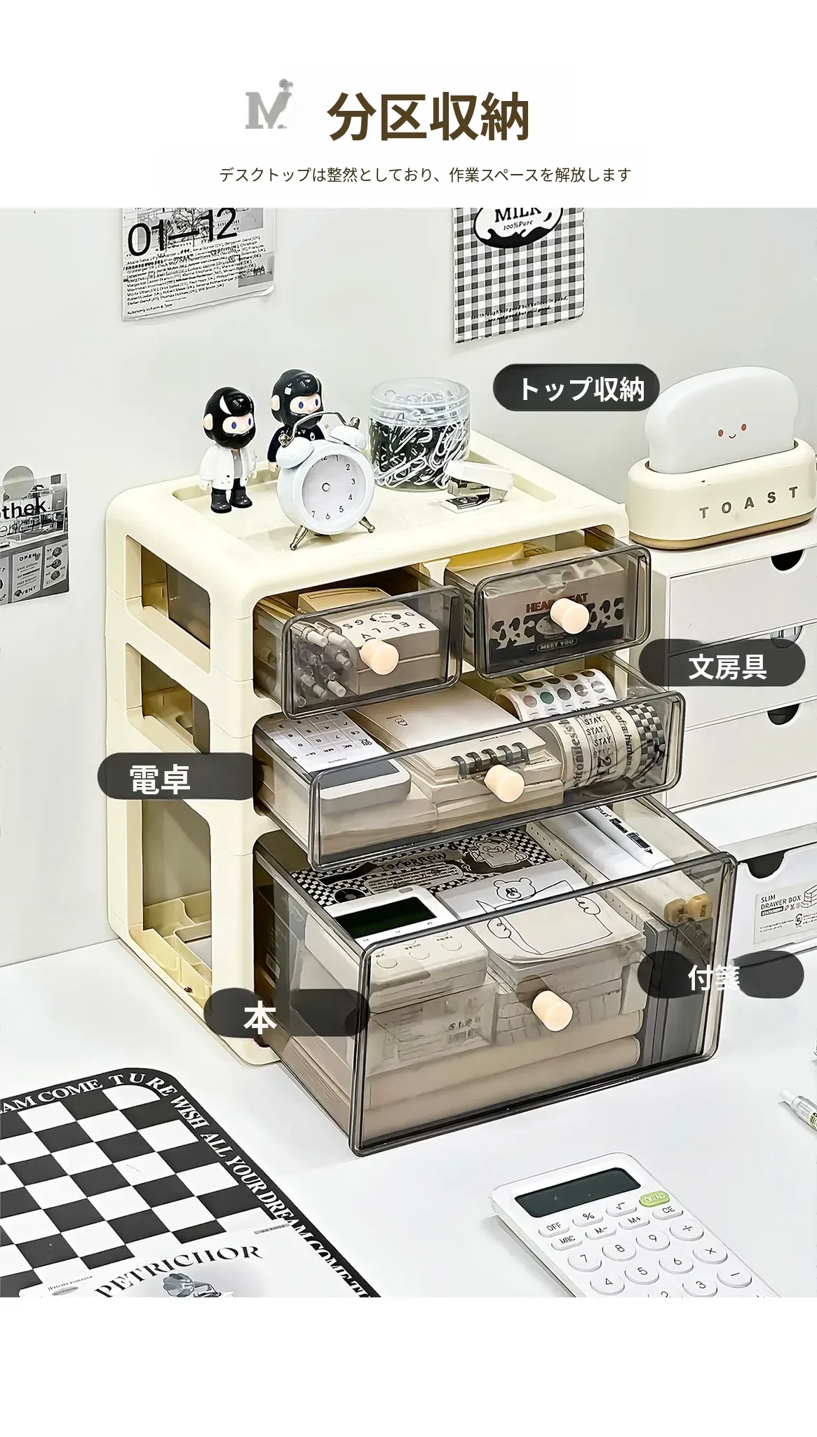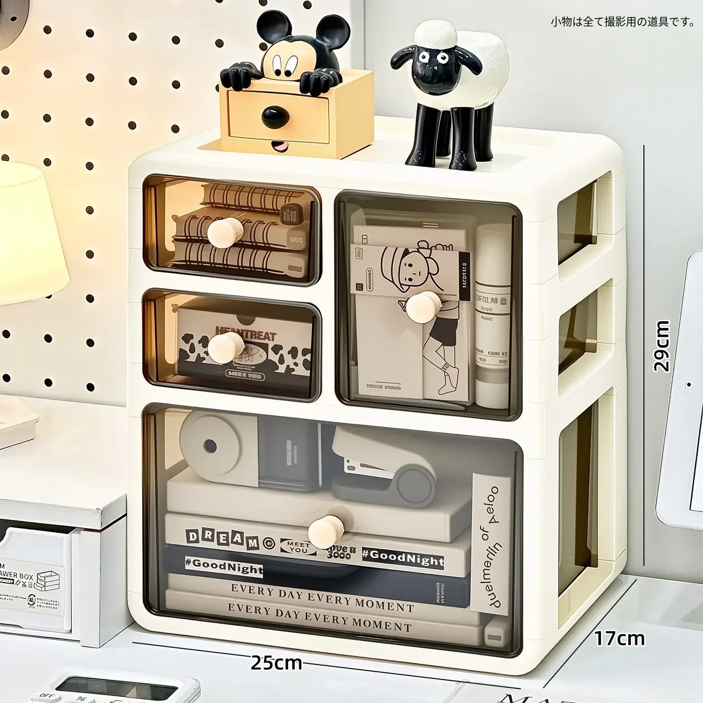 デスク用文房具収納ボックス - 透明で埃を防ぎ、学生の本や文具をすっきり整理!引き出し式デザインで使い勝手抜群の収納ラック。あなたの作業スペースを美しく整えましょう!