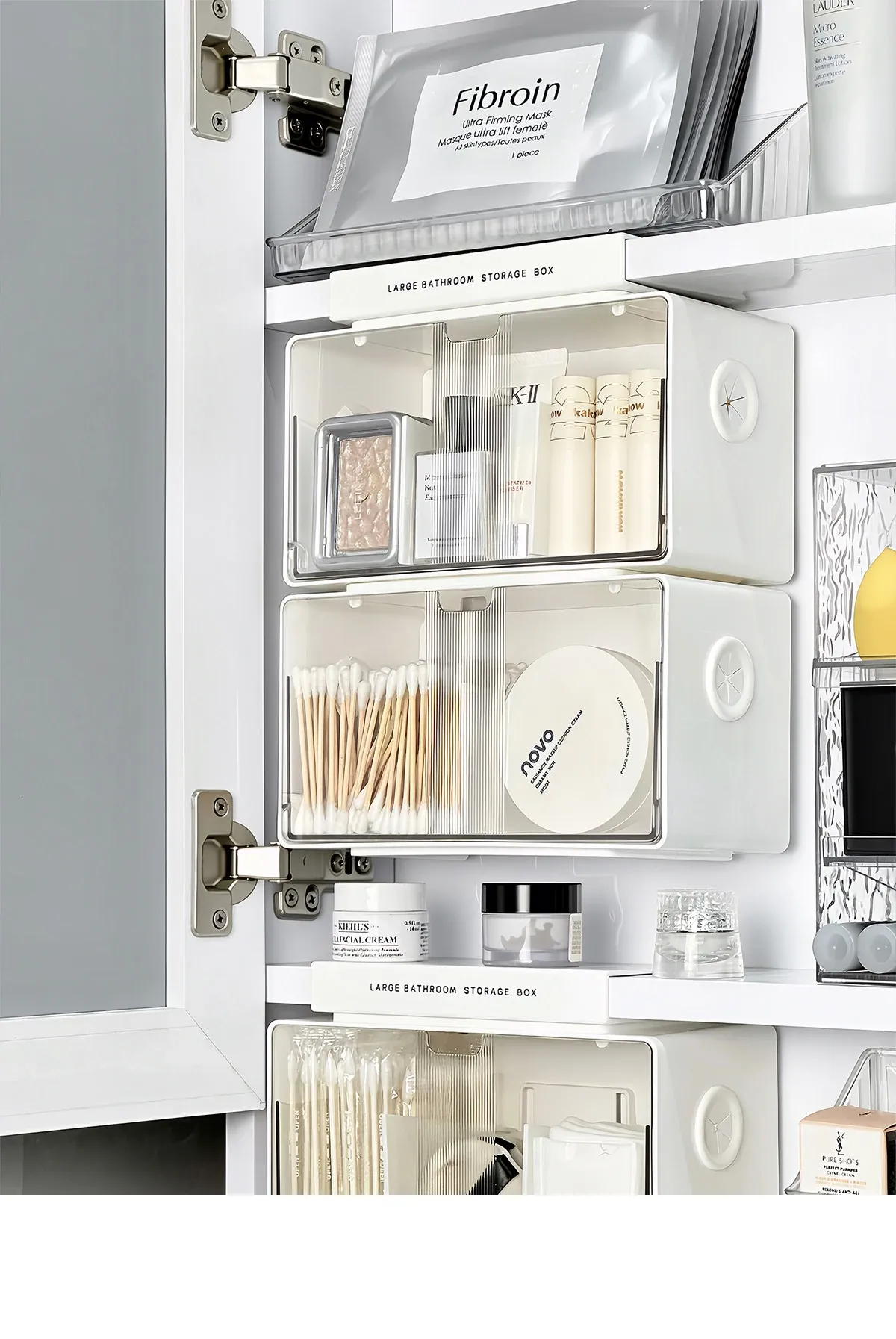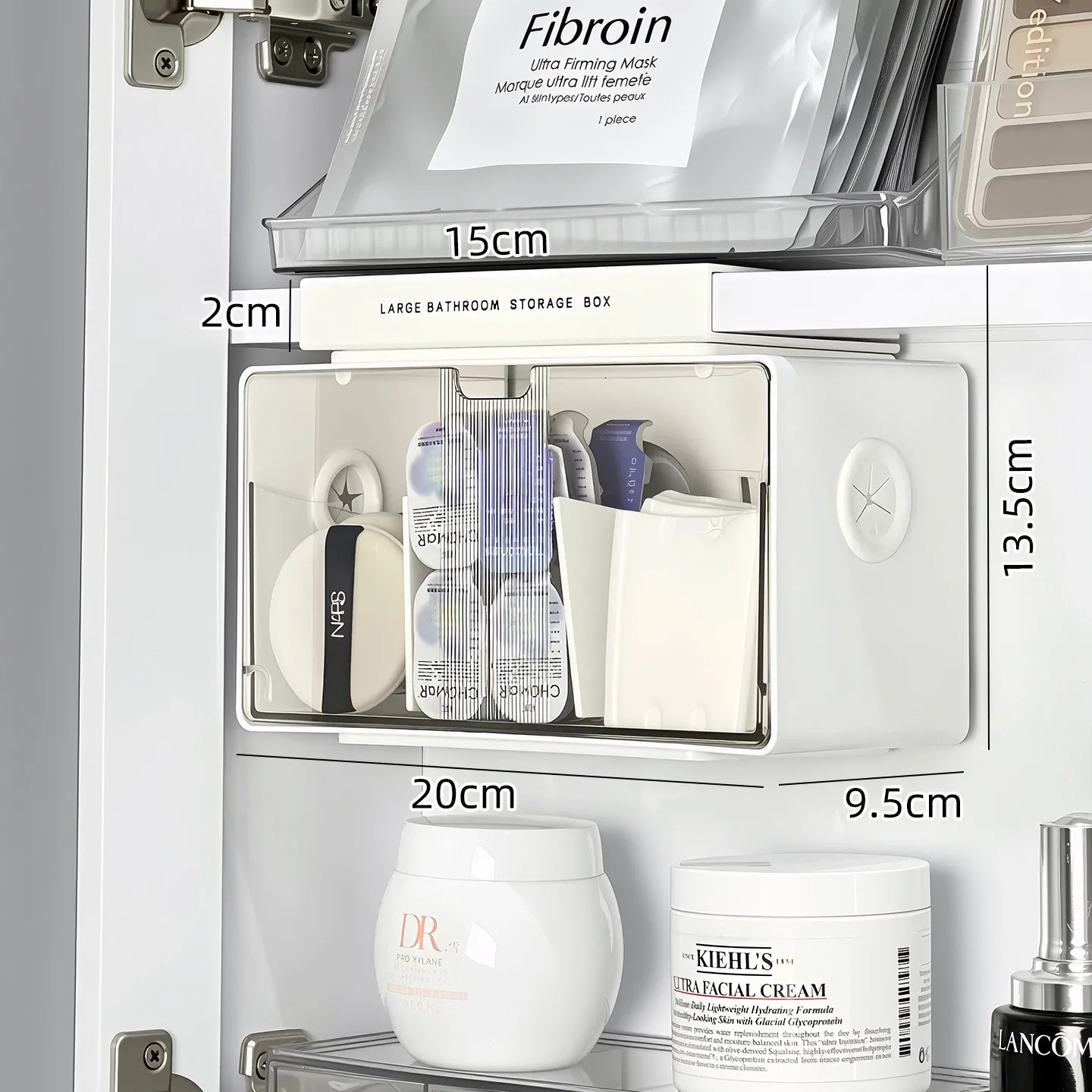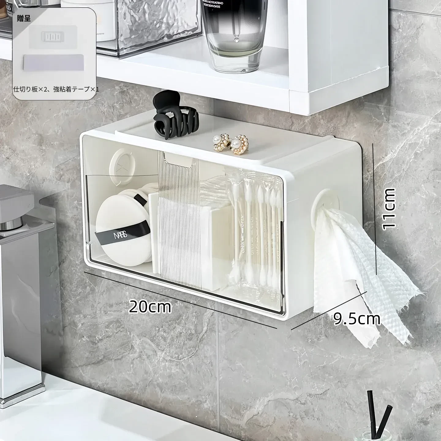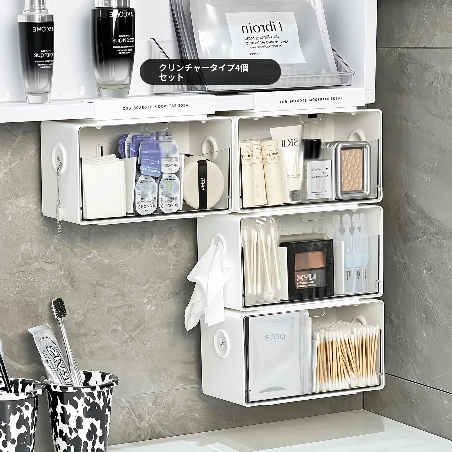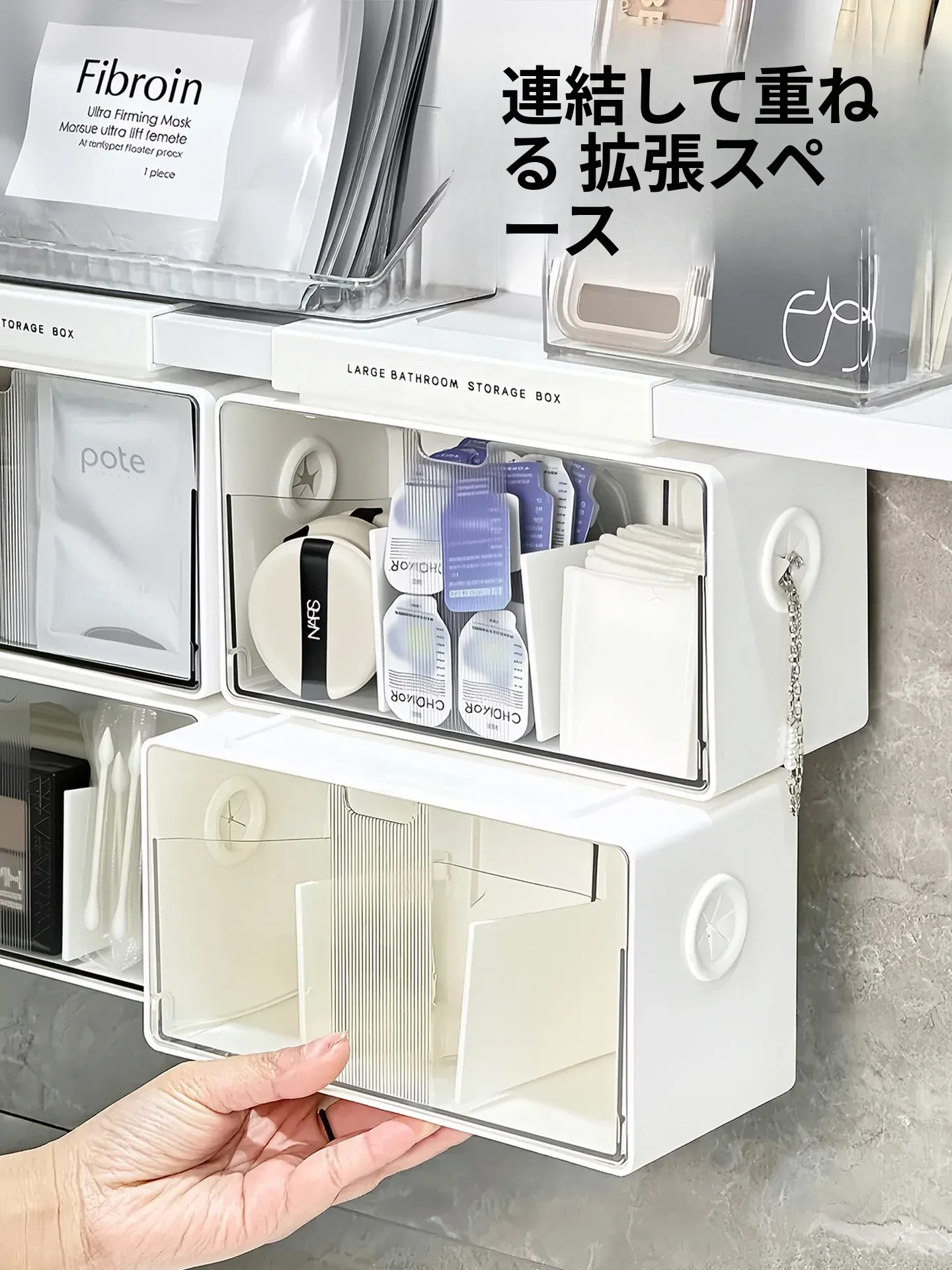 鏡の中のスキンケア収納ボックス|洗面所用化粧品整理|メイク落としコットン&綿棒用透明収納ラック|すっきり整理できる便利アイテム!