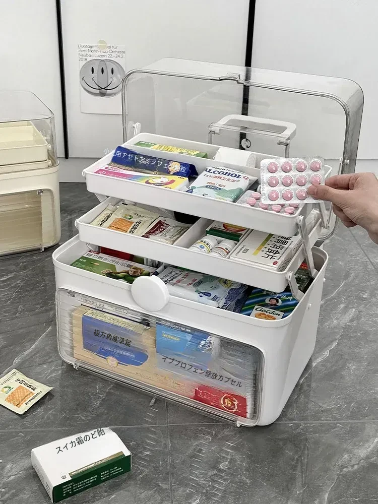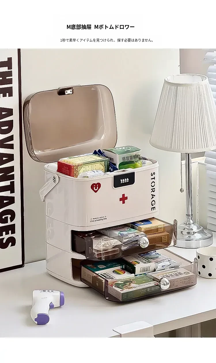 透明な引き出し式薬品収納ボックス - 家庭用多段階救急薬整理箱!デスク上に最適な整理整頓アイテムで、薬や雑貨をスッキリ収納。おしゃれで実用的、毎日の健康管理をサポートします!