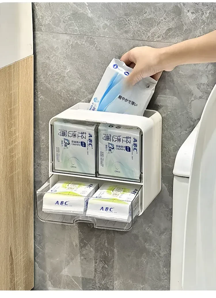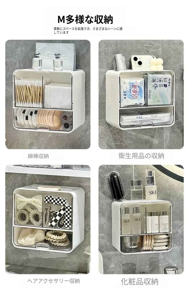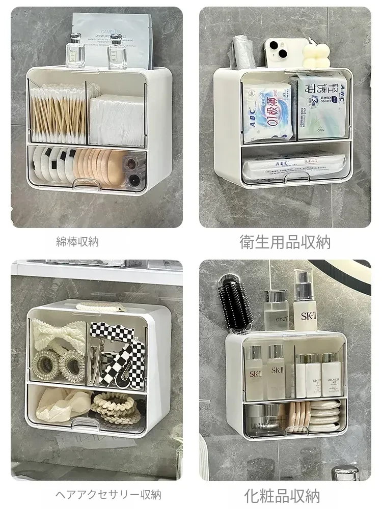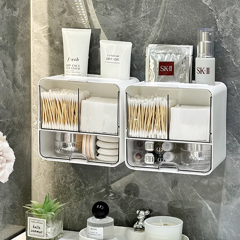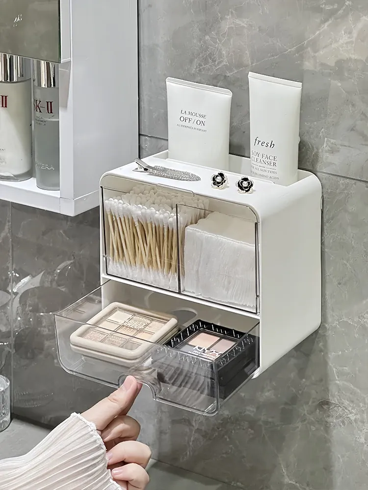 美しく整理整頓!壁掛け式コットン・メイクブラシ収納ボックス - トイレや鏡の下にぴったり!メイクパフやリップスティックもすっきり収納できる、スペースを有効活用するアイテムです。