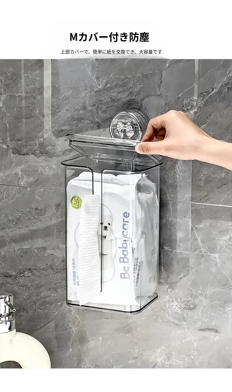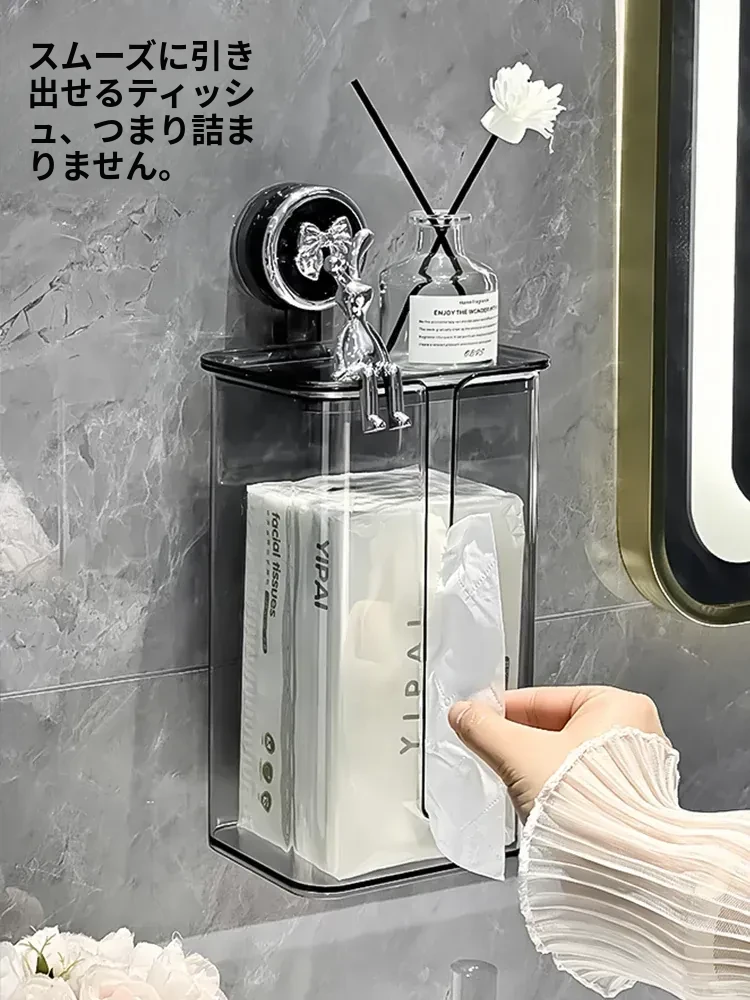 マスク収納ボックス 吸盤式 壁掛け 家庭用 玄関ドア後ろ用 使い捨てマスク専用 自動取り出しボックス!清潔で便利なマスク収納の必需品!