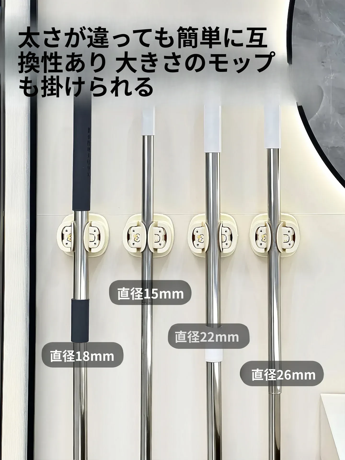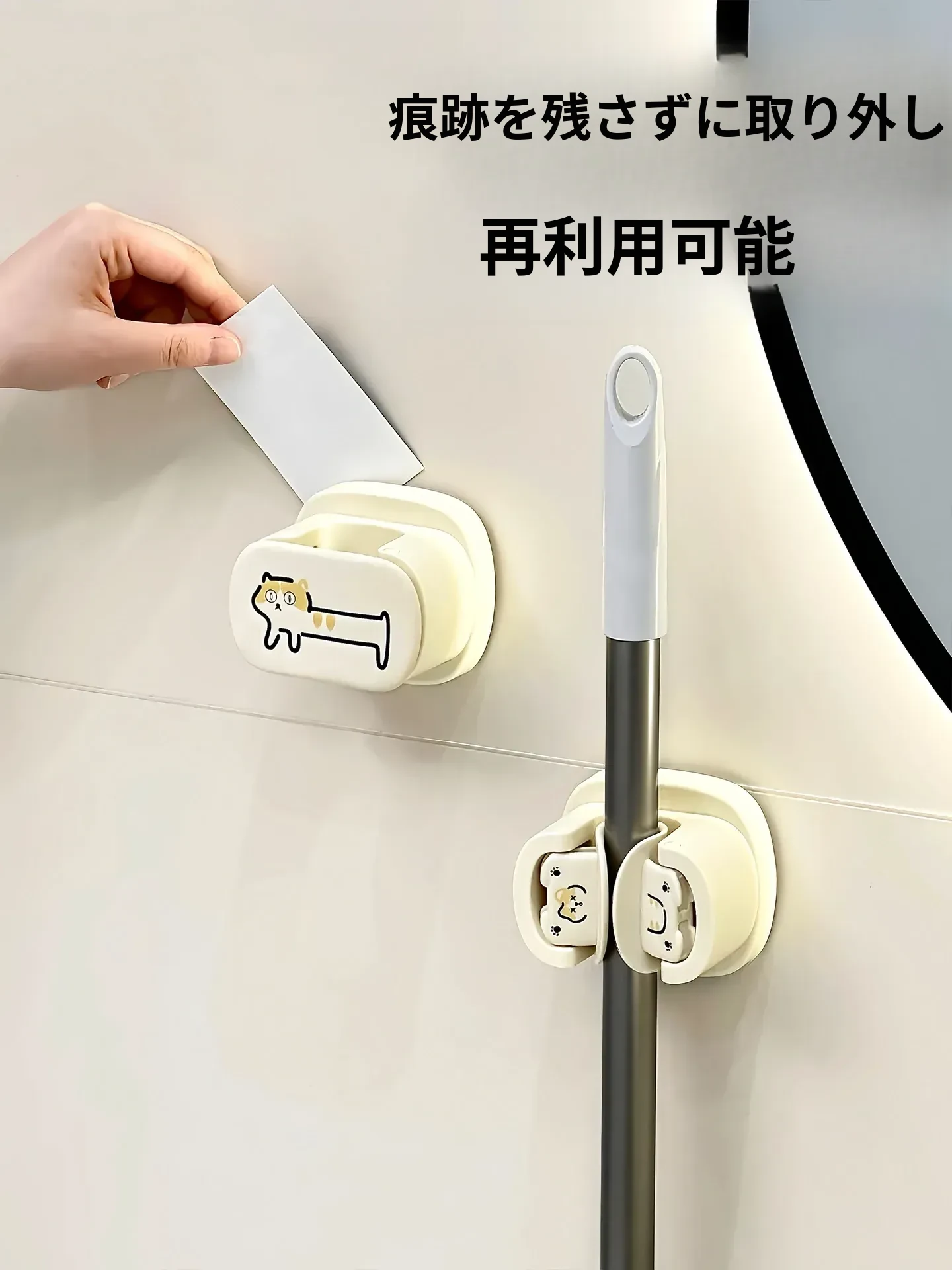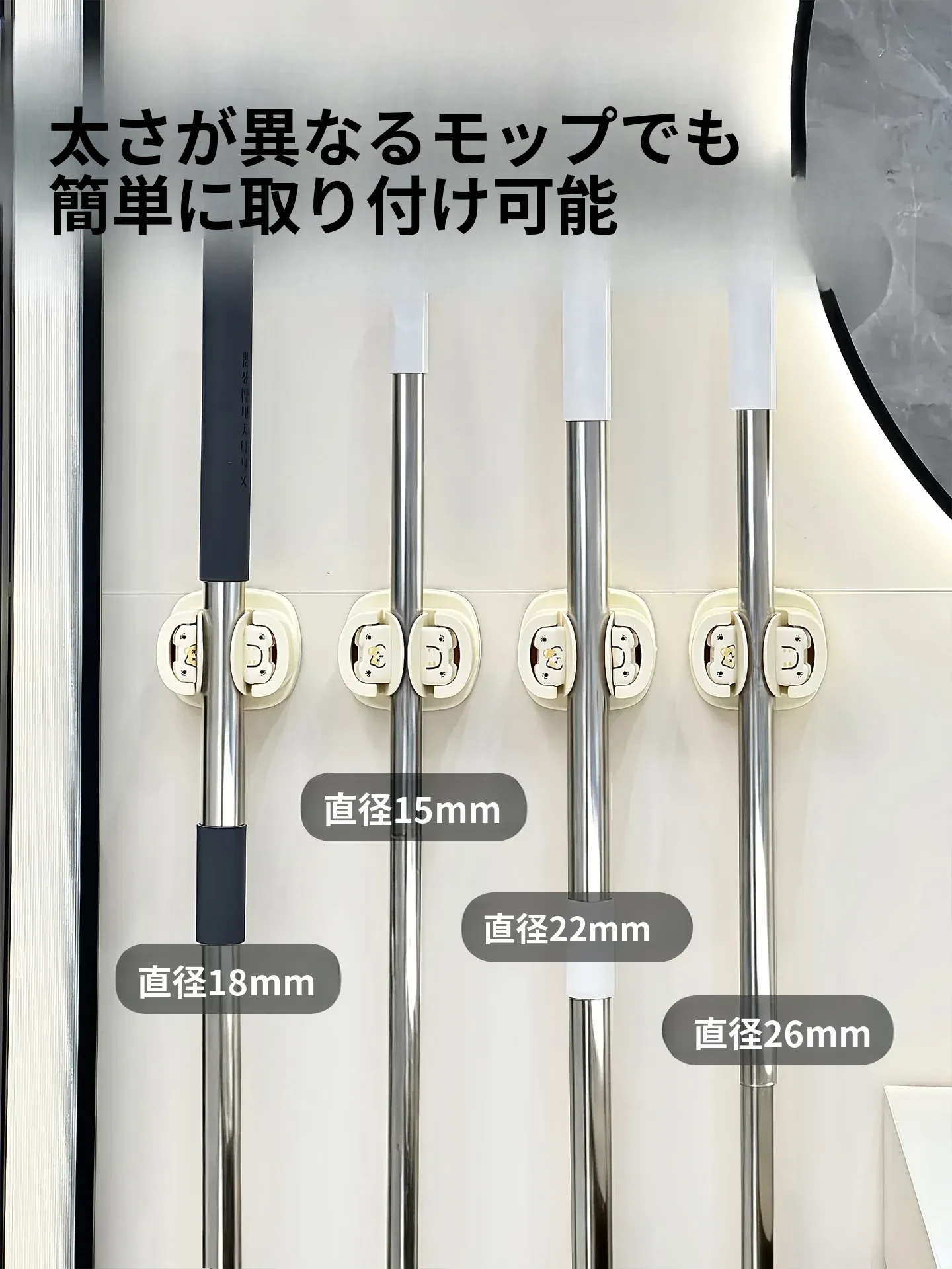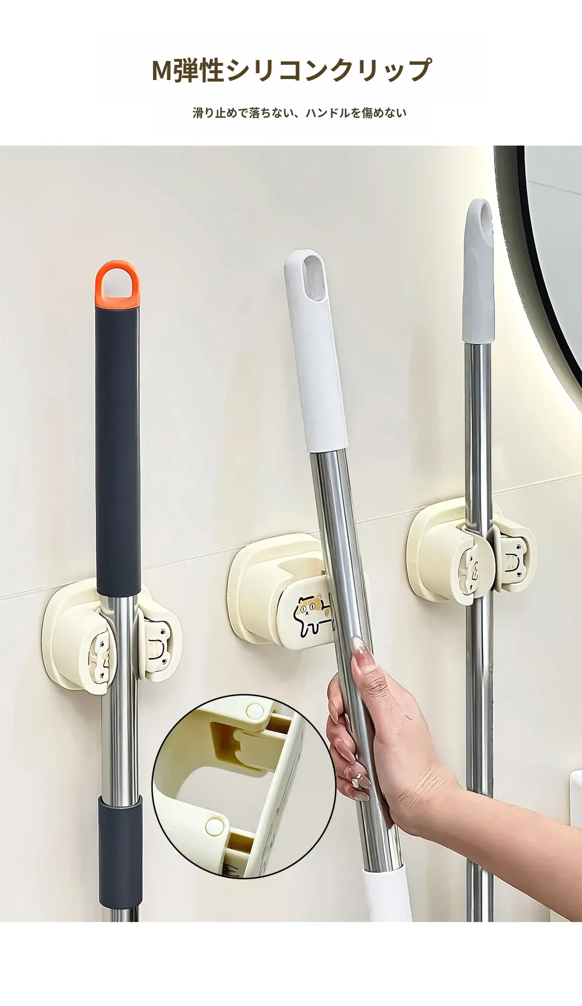 トイレやバスルームに最適!穴を開けずに取り付け可能な強力吸盤モップホルダー - スペースを有効活用し、清潔な空間を保つ便利なアイテム!
