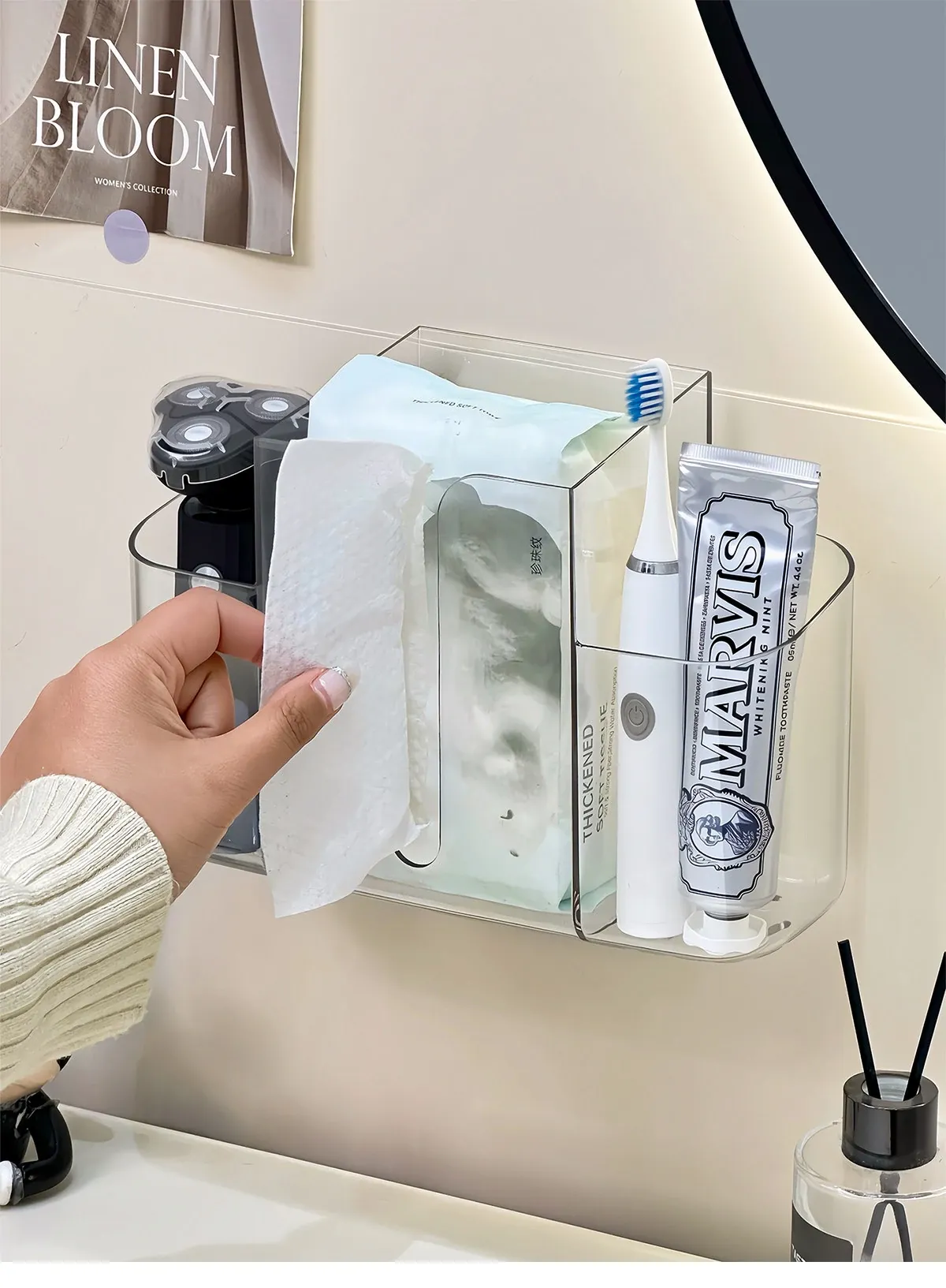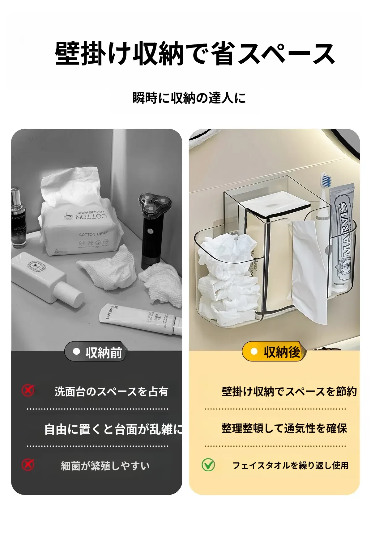 廃棄フェイスタオル収納ボックス 壁掛け式トイレ・バスルーム用 再利用可能なフェイスタオル・コットン柔らかタオル用収納ラックで、スペースを有効活用し、清潔感を保つ!