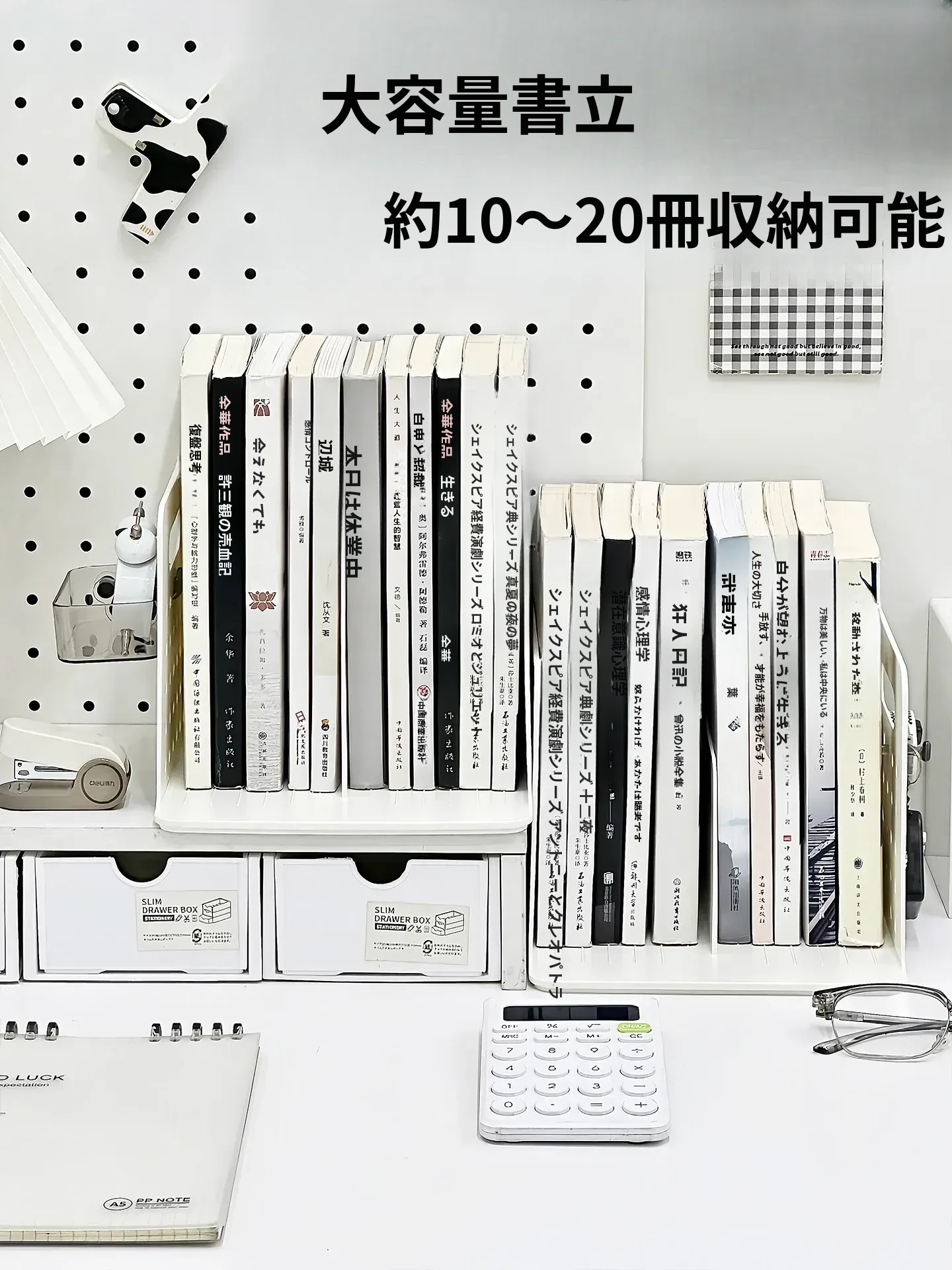 学生のためのデスク整理ボックス - 教科書や文房具をスッキリ収納!仕切り板付きで使いやすく、デスク上を整頓。勉強が捗る書籍スタンド&クリップ付き!おしゃれで機能的な収納アイテムです。