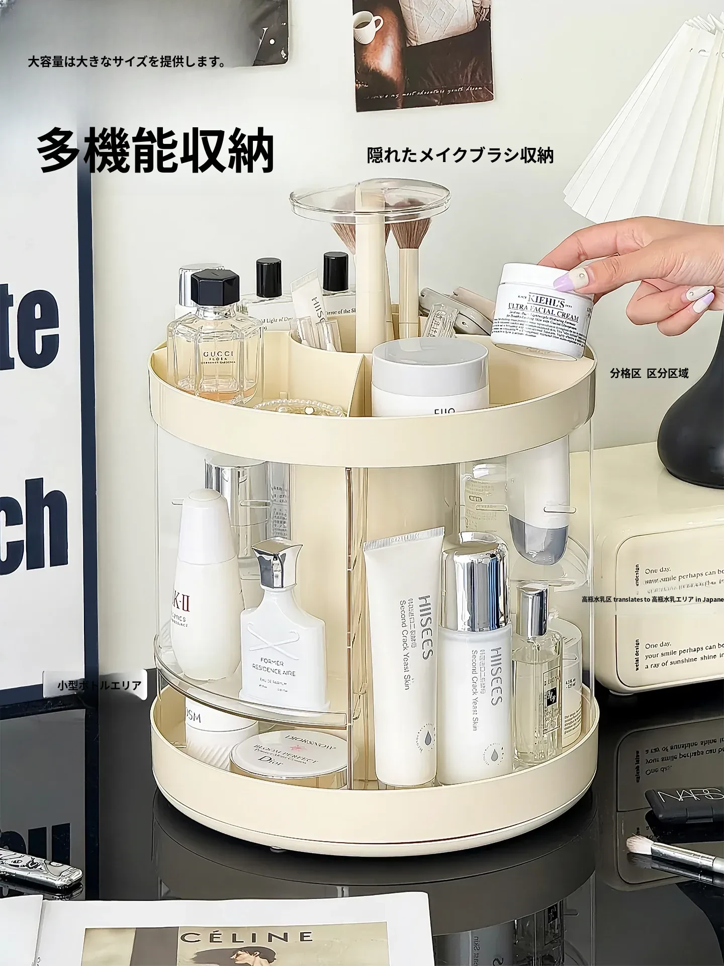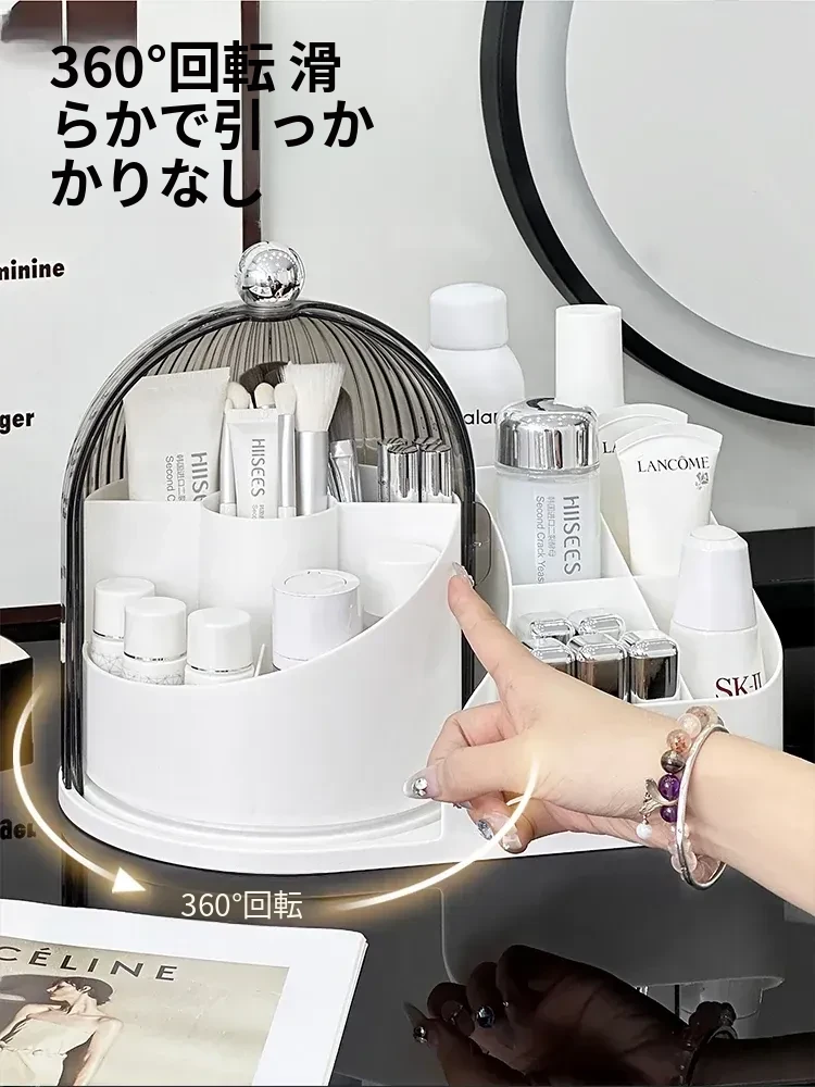 回転式メイクアップ収納ボックス|デスク上の高級感を演出する香水・スキンケアアイテム用の置物ラック|化粧台にぴったりな化粧ブラシ収納バケツ