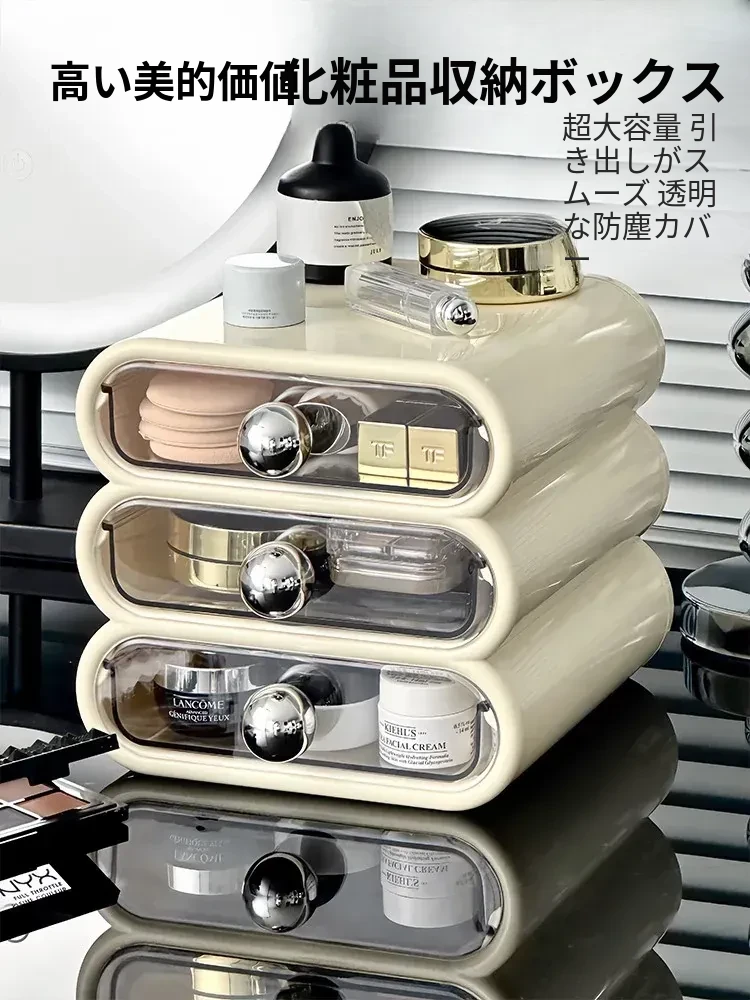 デスクトップ化粧品収納ボックス ドレッサー用引き出し式スキンケアアイテムラック 高級感溢れる大容量整理ボックス 美しさを引き立てる必需品!