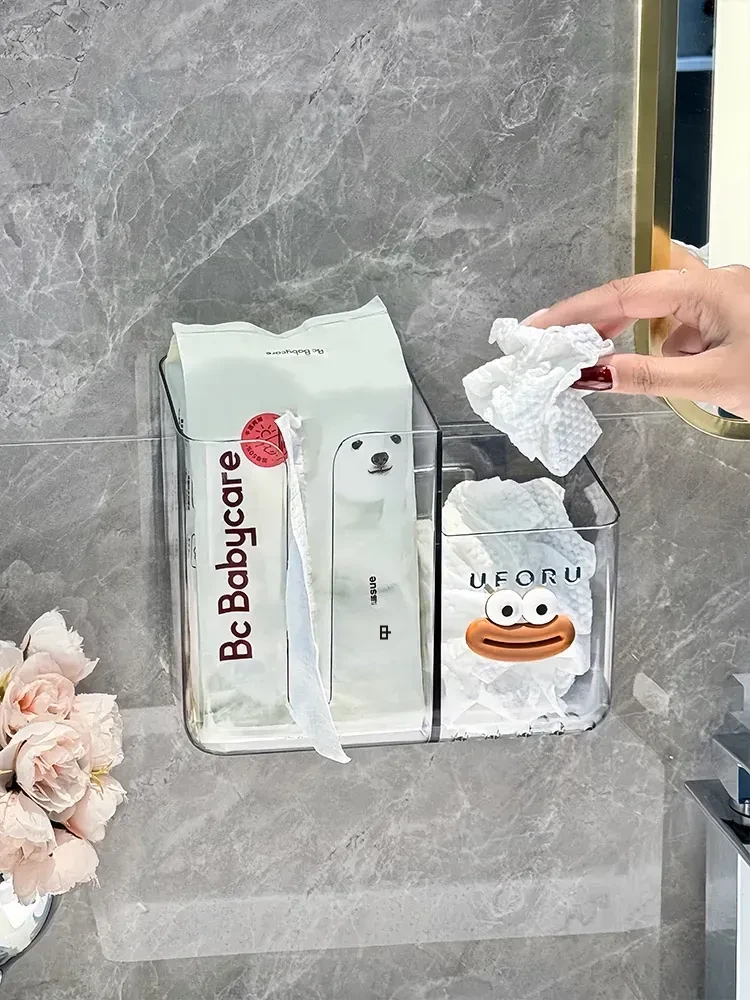 軽やかな贅沢感!壁掛けタイプの洗顔タオル収納ボックス - 穴あけ不要のティッシュホルダーで、すっきり整理整頓!バスルームにぴったりのデザインで、毎日のスキンケアをより快適に。